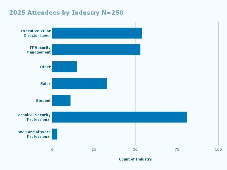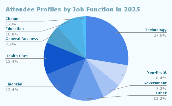 The Summit has excellent representation across industries and job functions. In 2025, the profile of paid Summit attendees who provided their data was as follows: